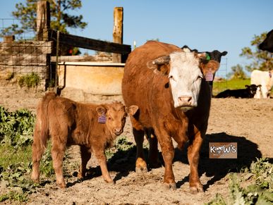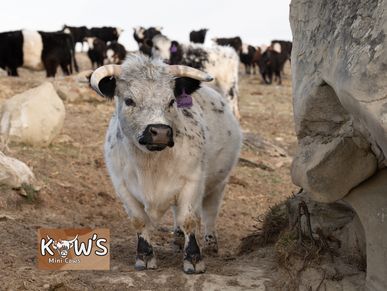 Sugar! She is an itty bitty dexter mixed cow bred to a mini highpark bull for a spring 2025 calf!